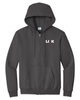 9-ounce, 50/50 cotton/poly fleece Air jet yarn for softness Two-ply hood with dyed-to-match drawcords YKK metal zipper Front pockets