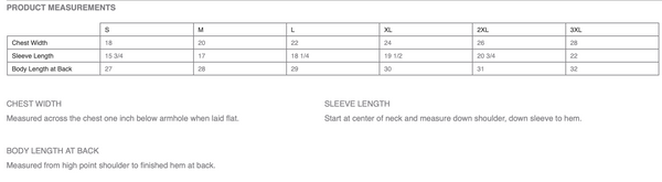 Adult Shirt: 4.5-ounce, 100% ring spun US cotton Non-topstitched 5/8" rib collar Taped neck and shoulders Tearaway label Modern classic fit tubular body Double-needle sleeves and hem